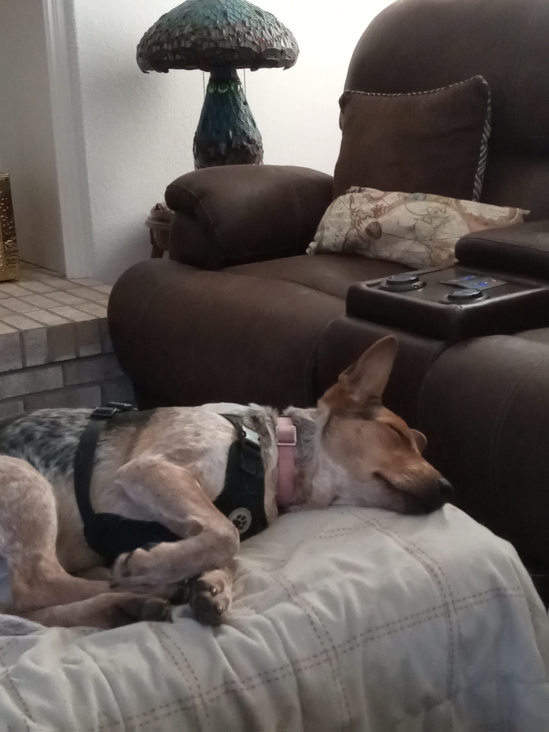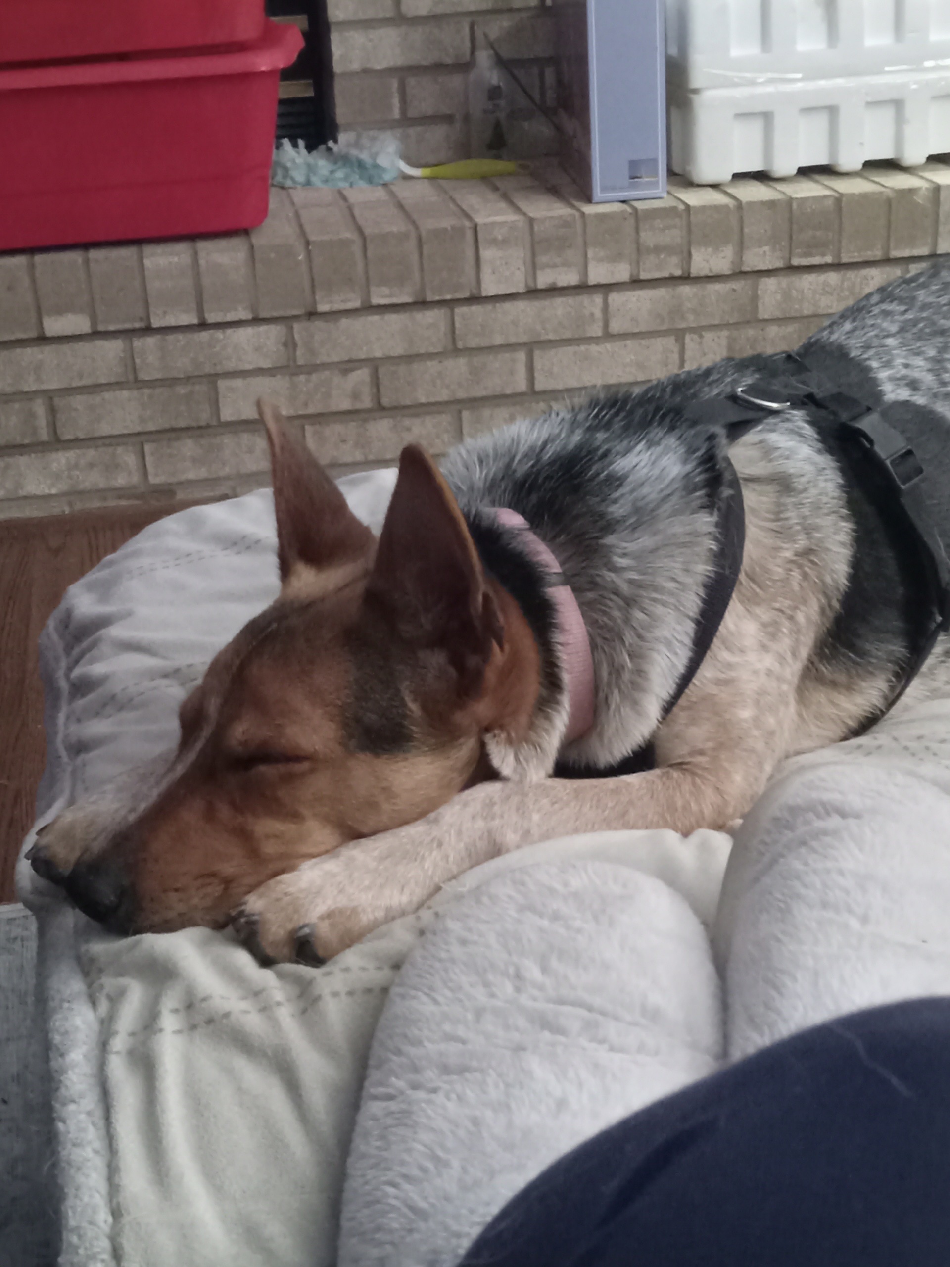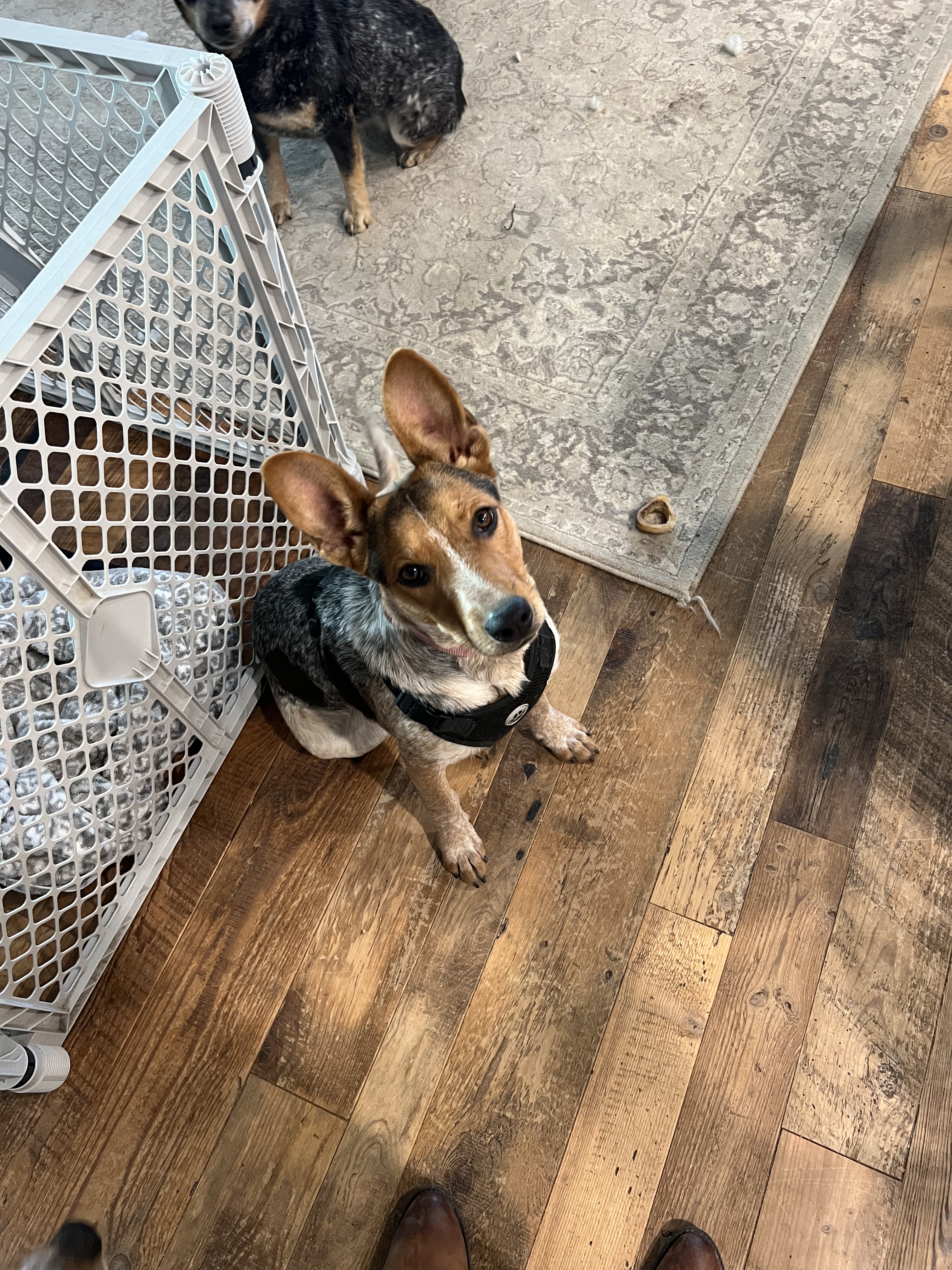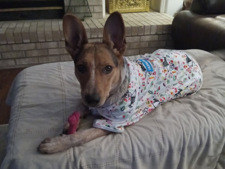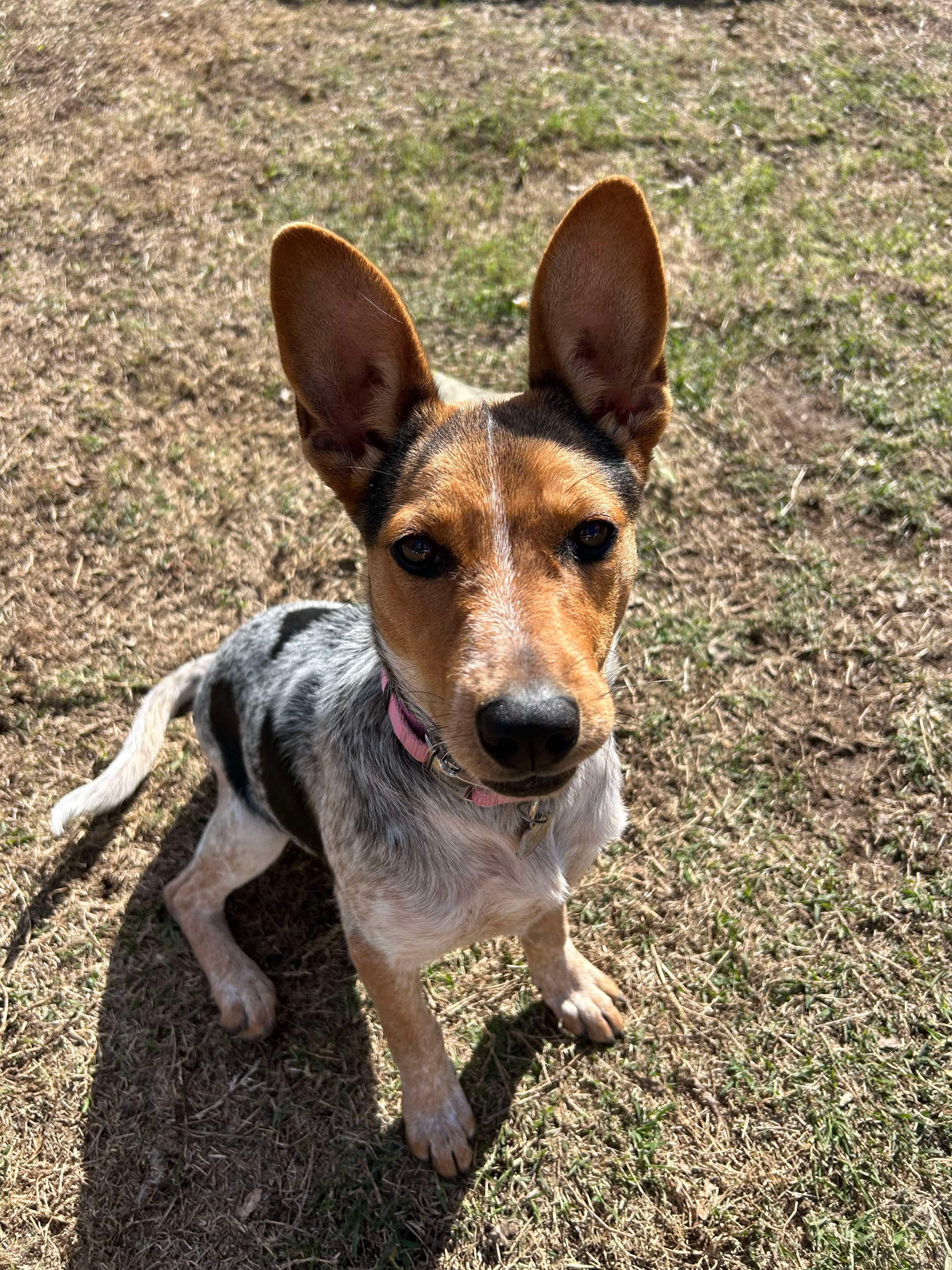 Bella was picked up as a stray in Oklahoma and taken in by an elderly woman who had a stroke and could no longer care for her. Bella ended up at a shelter and needed a home, so we stepped up. Bella is almost a year old. She weighs about 35 lbs. She is good with other dogs and children. She doesn’t chase cats but wants them to play with her. She is crate trained and potty trained. She’s all about the love and being part of a family. She is spayed and current on all of her shots. She loves to run and play, but will cuddle up on the couch and watch TV too!